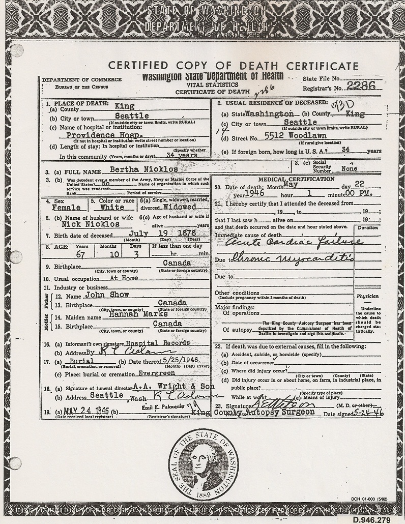 Bertha (Shaw/Carmoody) Nicklos