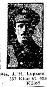 John Herbert Lupson was born circa 1887 at Ely, England. John and Ethel May LaBallister, daughter of John George LaBallister and Maria Elizabeth Hattie, were married by Reverend H. C. Dixon on Saturday, 14 February 1914 at their home, 109 Sumach St., Toronto, York Co., Ontario, Canada. She was 28, living at 109 Sumach Street, born Toronto, widow, Church of England. He was 27, living at 109 Sumach Street, born Ely, England, bachelor, laborer, Anglican. Richard Lupson and Mary Lupson witnessed the marriage.